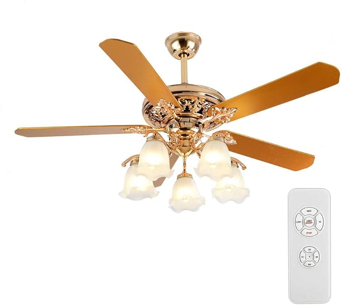 Modern Chandelier Golden Ceiling Fan Light with Remote, 5 Reversible Blades 5 Frosted Lampshades,3 Wind Gear, Quiet MotorIndoor Ecological Chandelier Fan for Living Room/Bedroom Factory Outlet For Sale