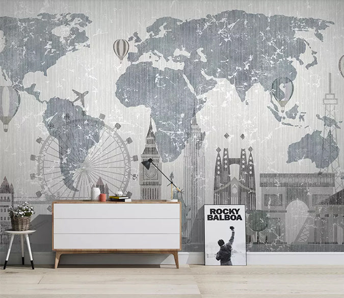 3D Gray Map 980 Wall Murals Cheap Comfortable