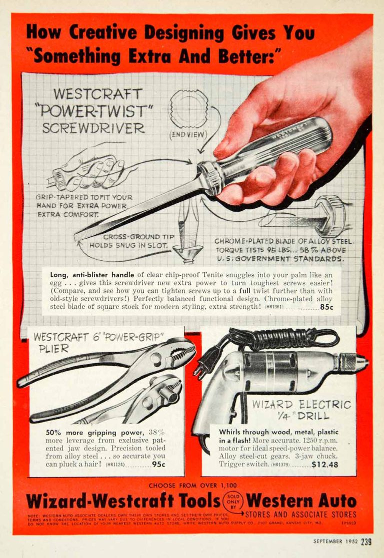 1952 Ad Westcraft Power-Twist Screwdriver Pliers Electric Drill Wizard PSC2 Sale With Mastercard