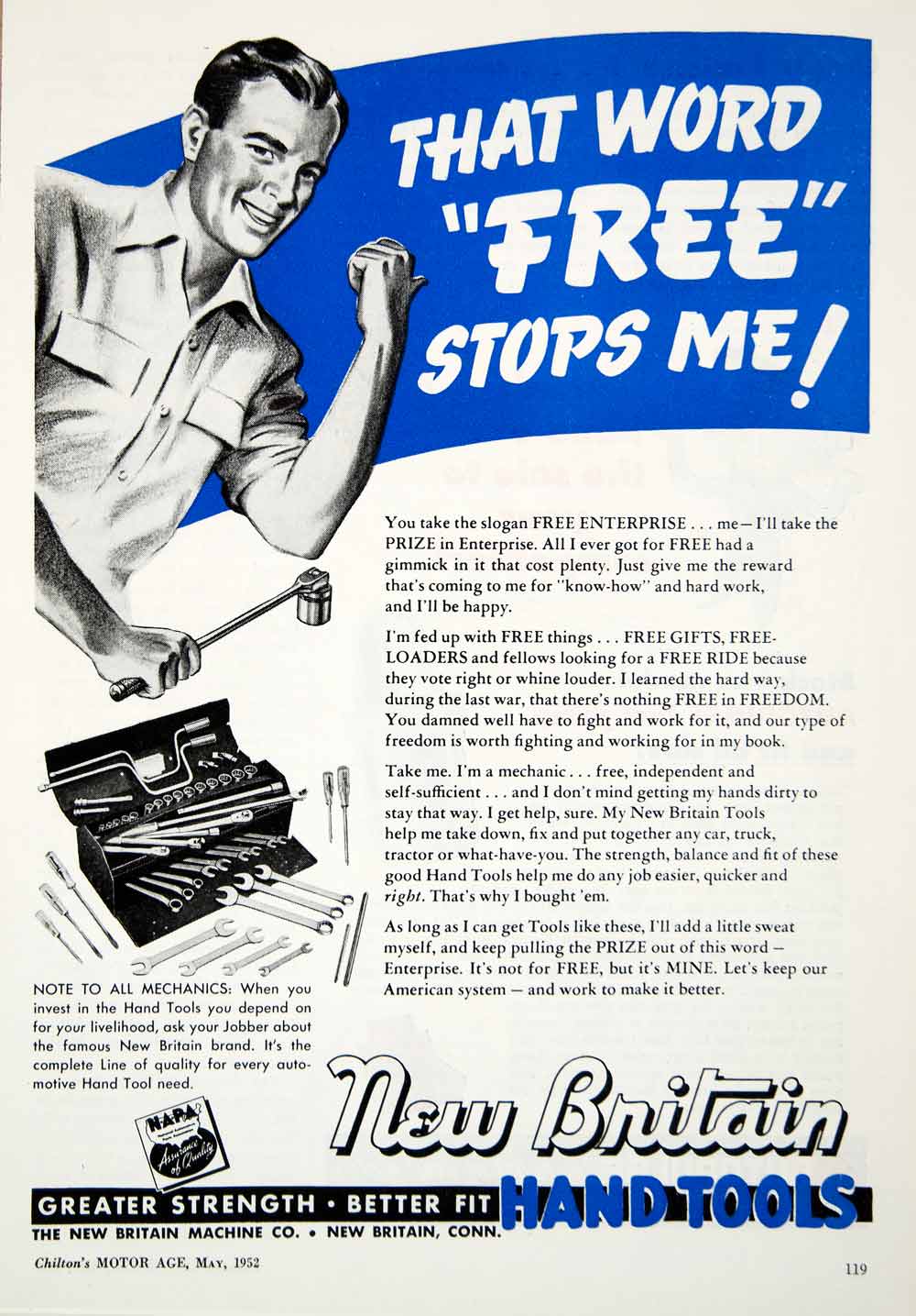 1952 Ad New Britain Hand Machine Tools Free Wrench Spanner Mechanic YMA1 Cheap Pice