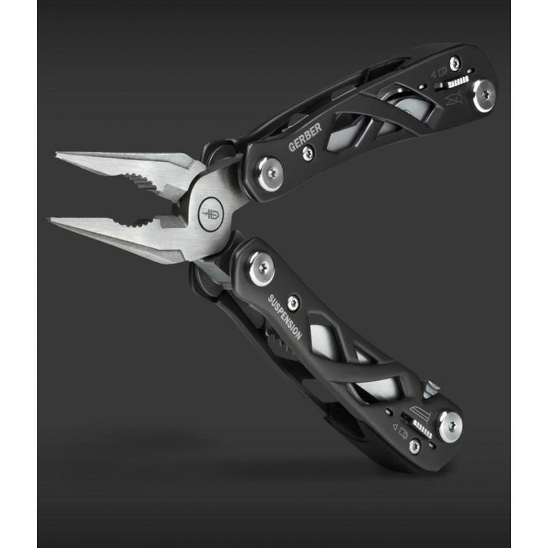 Inspired by the bridges of Gerber’s hometown in Portland, Oregon, the Suspension is an open frame multitool with spring-loaded pliers, our Saf.T.Plus™ locking system, a fine-edge knife, serrated knife, rough cut saw and more. Housed in a ballistic nylon sheath, it’s a lightweight down-and-dirty workhorse.